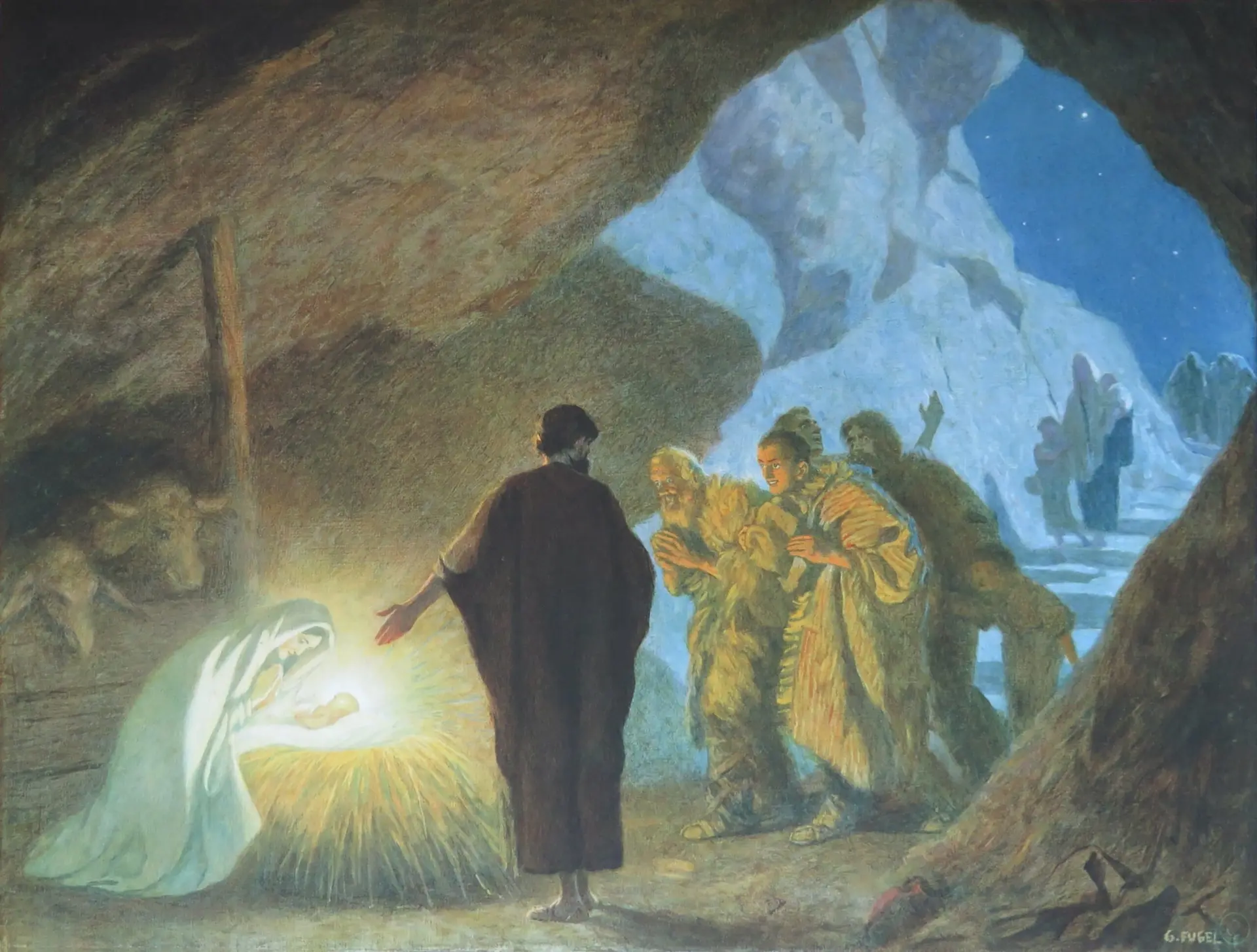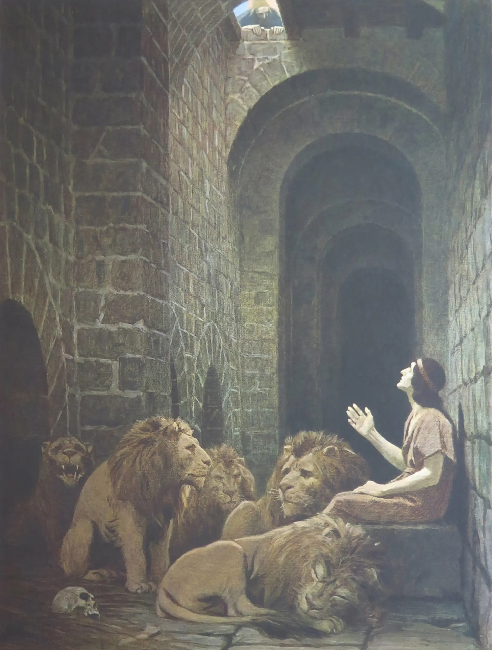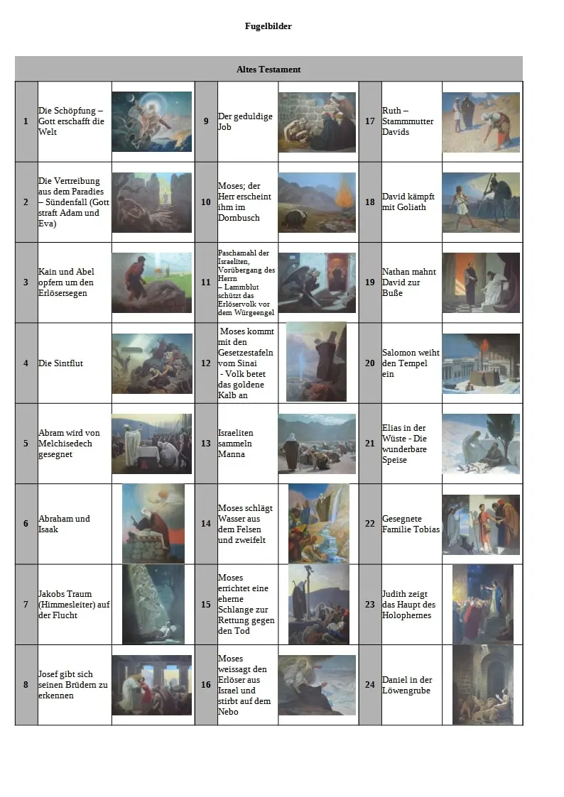 Diese Bildtafeln zeigen biblische Szenen nach Gemälden des deutschen Malers Gebhard Fugel (1836–1939).