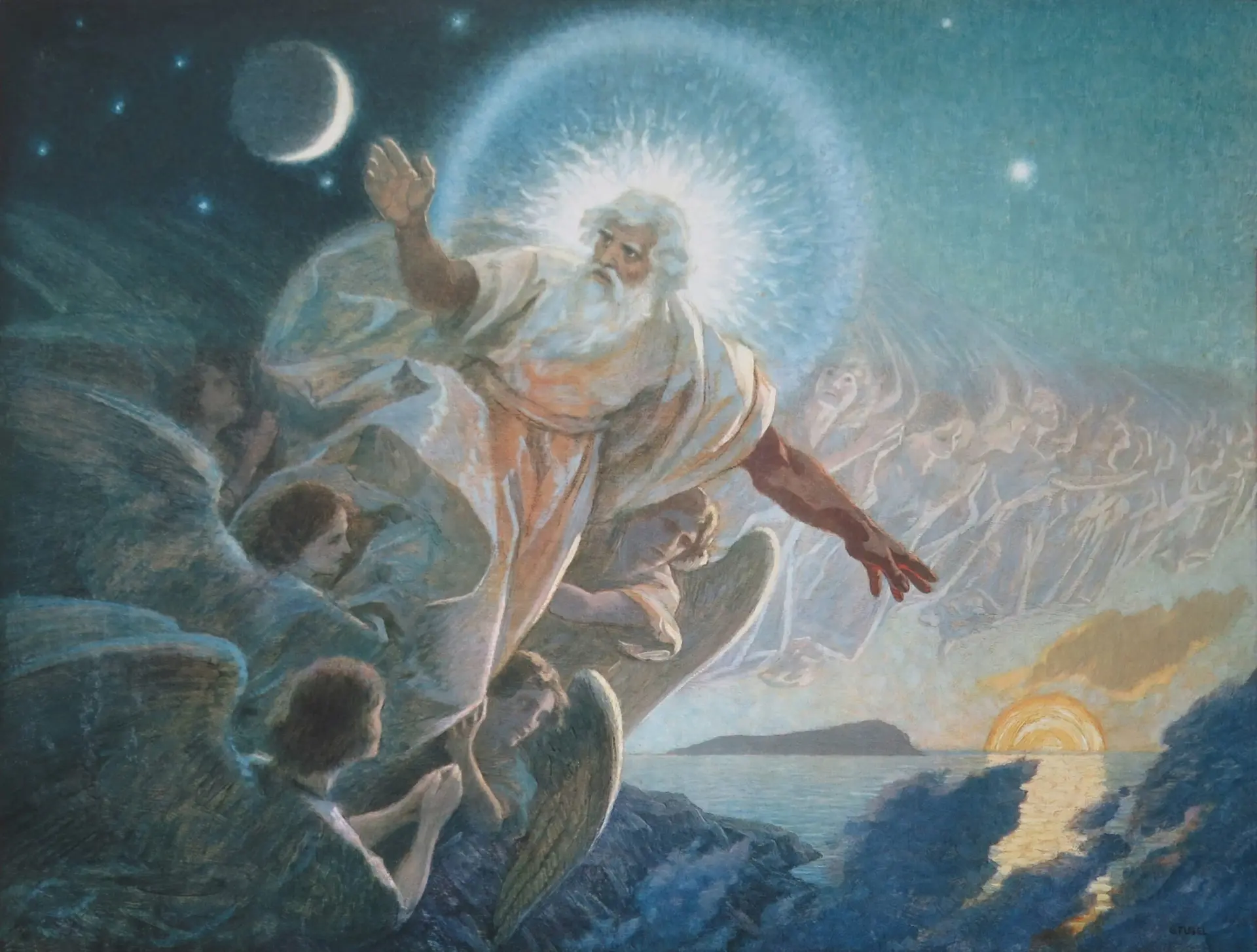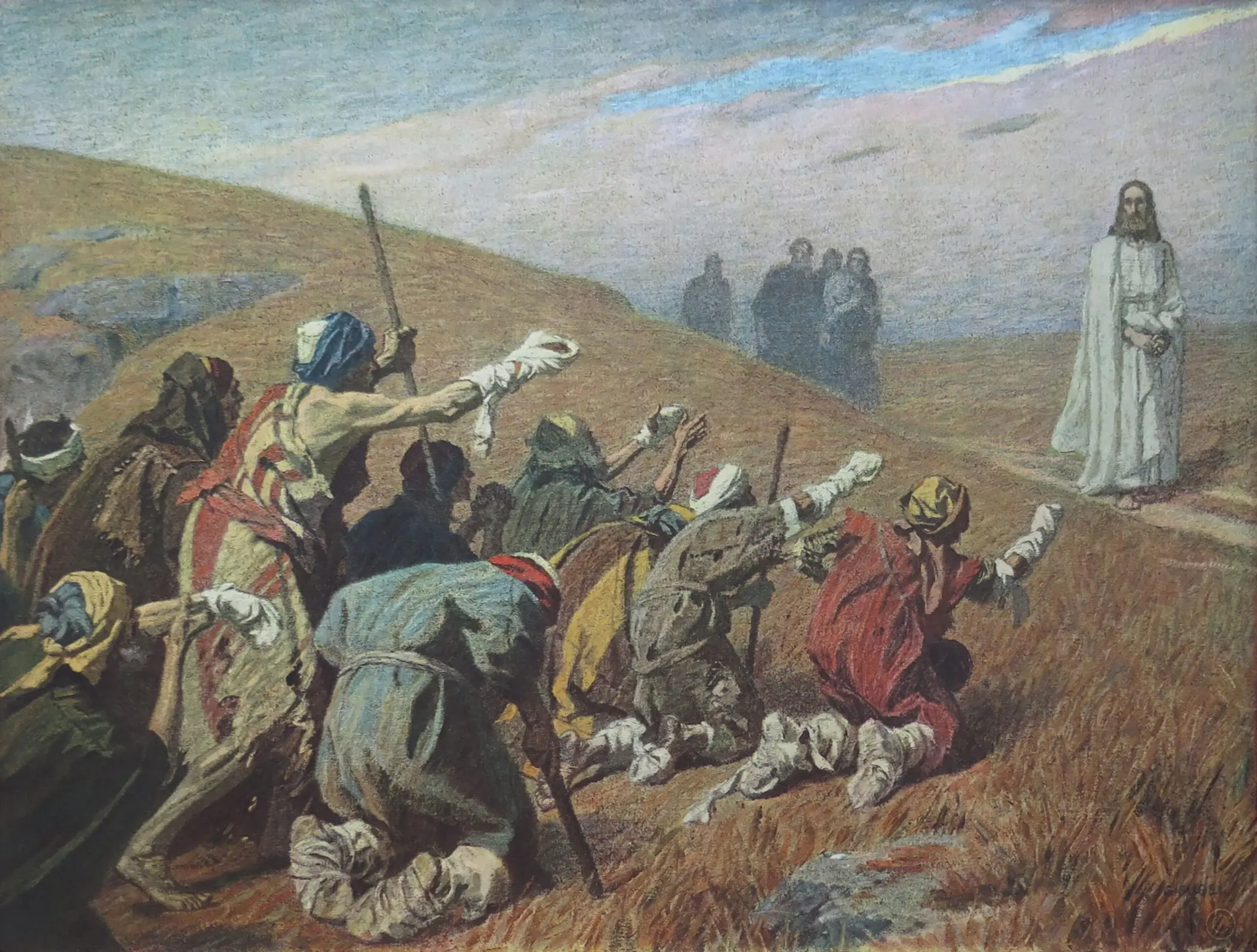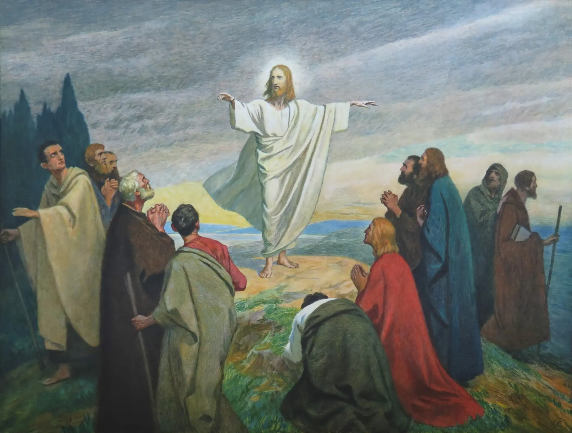 Diese Bildtafeln zeigen biblische Szenen nach Gemälden des deutschen Malers Gebhard Fugel (1836–1939).
