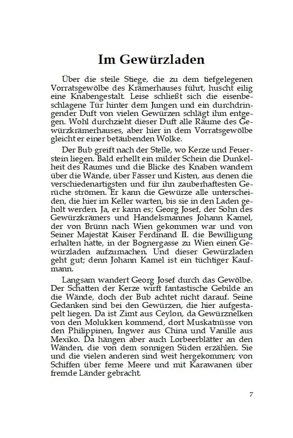 Das Buch Camelius von K. G. Meise schildert den Lebensweg Georg Josef Kamels, der im Umfeld eines Wiener Gewürzhändlers aufwächst und in den Orden der Jesuiten eintritt. Nach der Ausbildung wird er in den Missionsdienst nach Manila entsandt. Die Handlung umfasst die Seereise, den Aufenthalt im Kollegium, die Arbeit in Apotheke und Krankendienst sowie Missionsfahrten ins Landesinnere, bei denen er mit der einheimischen Bevölkerung in Kontakt tritt.