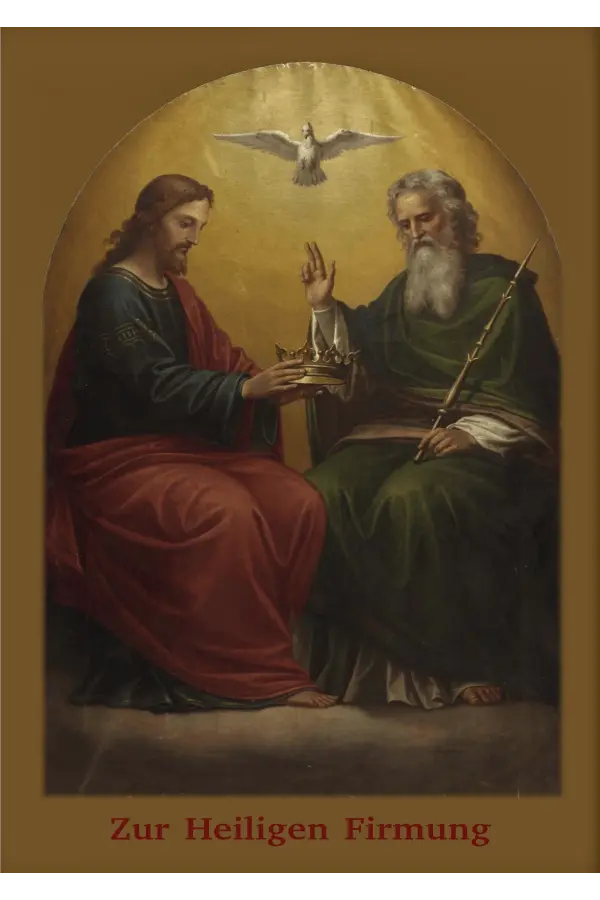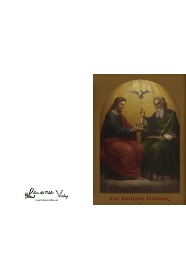 Diese gefaltete Karte zeigt die Dreieinigkeit mit Krone nach Max Fürst (1846–1917).