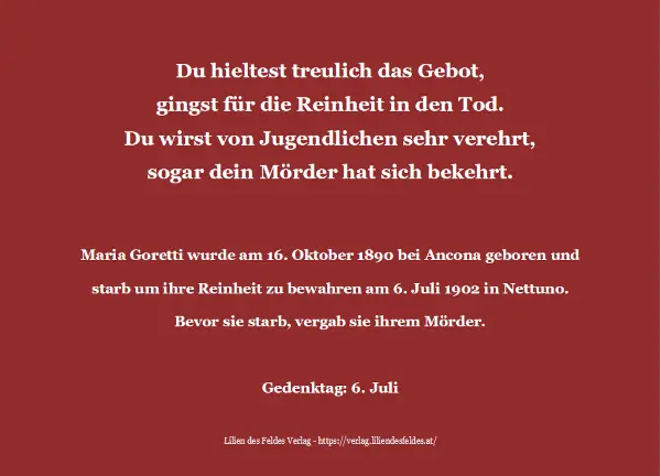 Maria Goretti wurde am 16. Oktober 1890 bei Ancona geboren und starb,