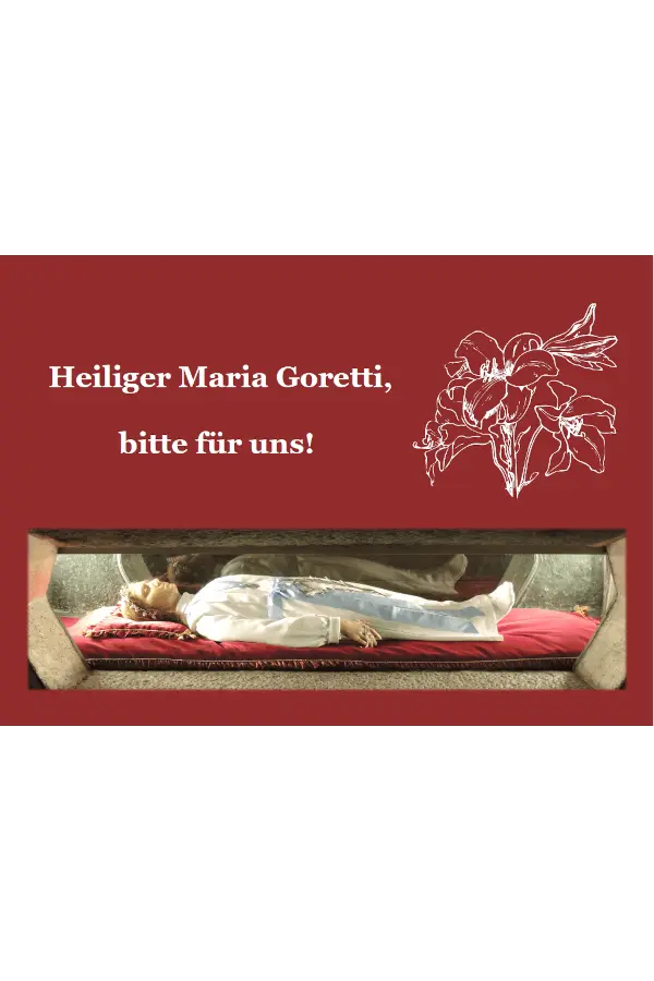Dieses Gebetsbild zeigt die heilige Maria Goretti.