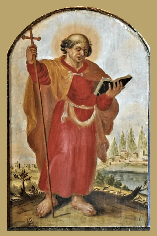 Dieses gefaltete Andachtsbild zeigt den heiligen Apostel Philippus.