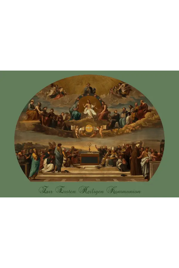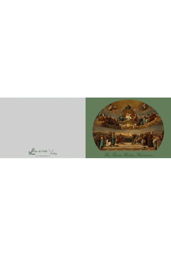 Diese gefaltete Karte zeigt ein Eucharistie-Motiv nach Raffael.