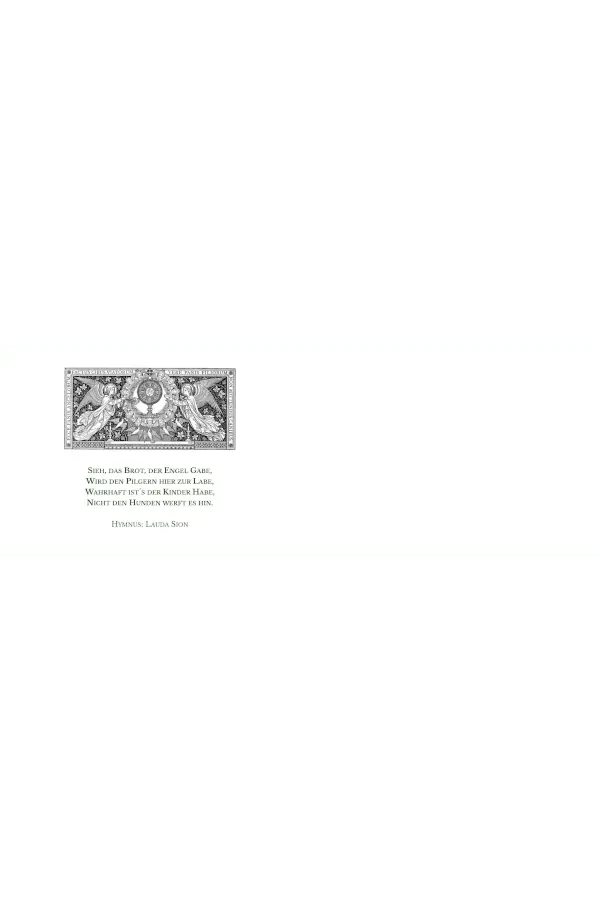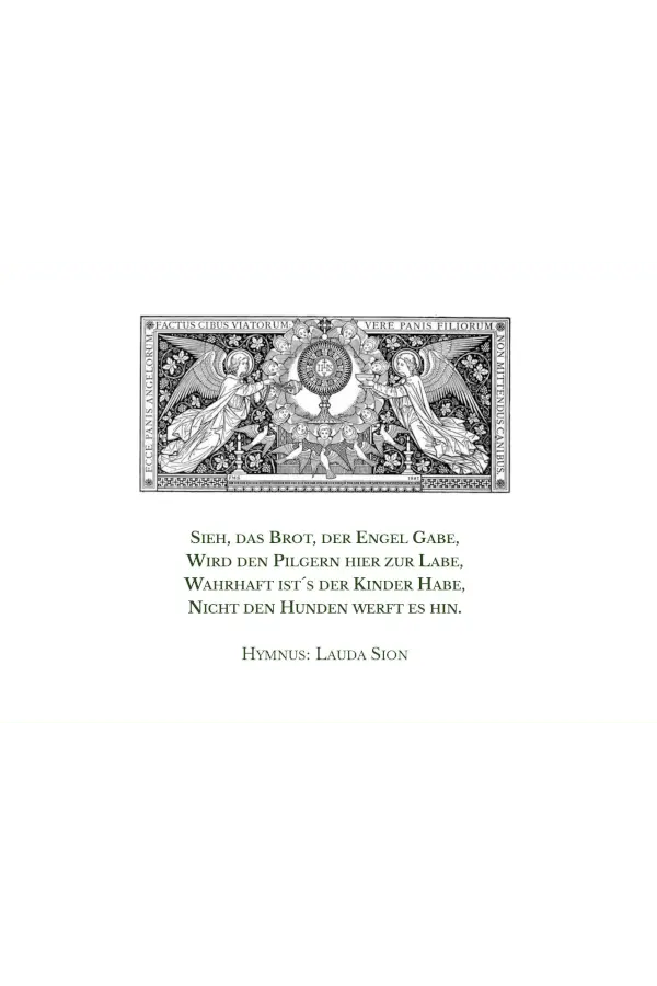 Auf der linken Innenseite befindet sich ein Motiv mit folgendem Text aus dem Hymnus „Lauda Sion“: