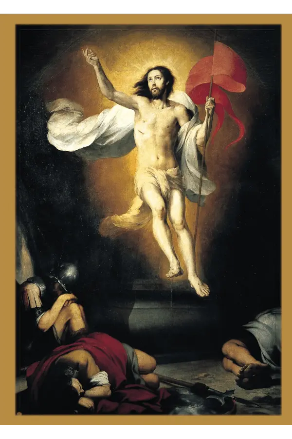 Diese gefaltete Osterkarte zeigt die Auferstehung Christi nach Bartolomé Esteban Murillo (1617–1682).