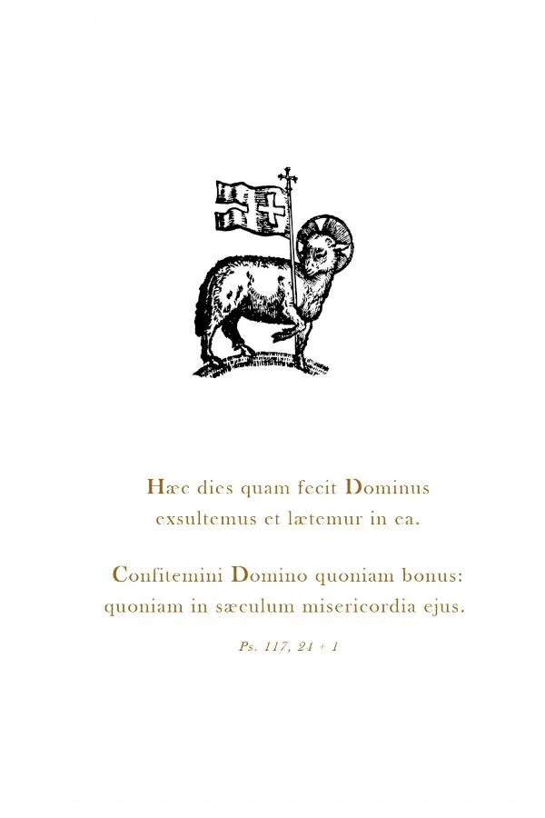 Auf der linken Innenseite befindet sich ein Bild mit folgendem Psalmtext: