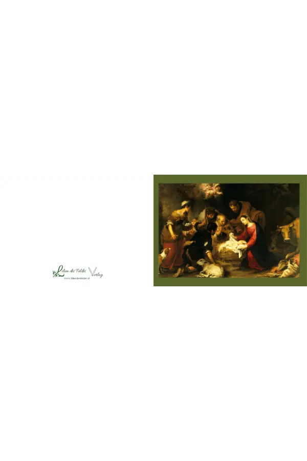 Diese gefaltete Weihnachtskarte zeigt die Anbetung der Hirten nach Bartolomé Estebán Murillo (1617–1682).